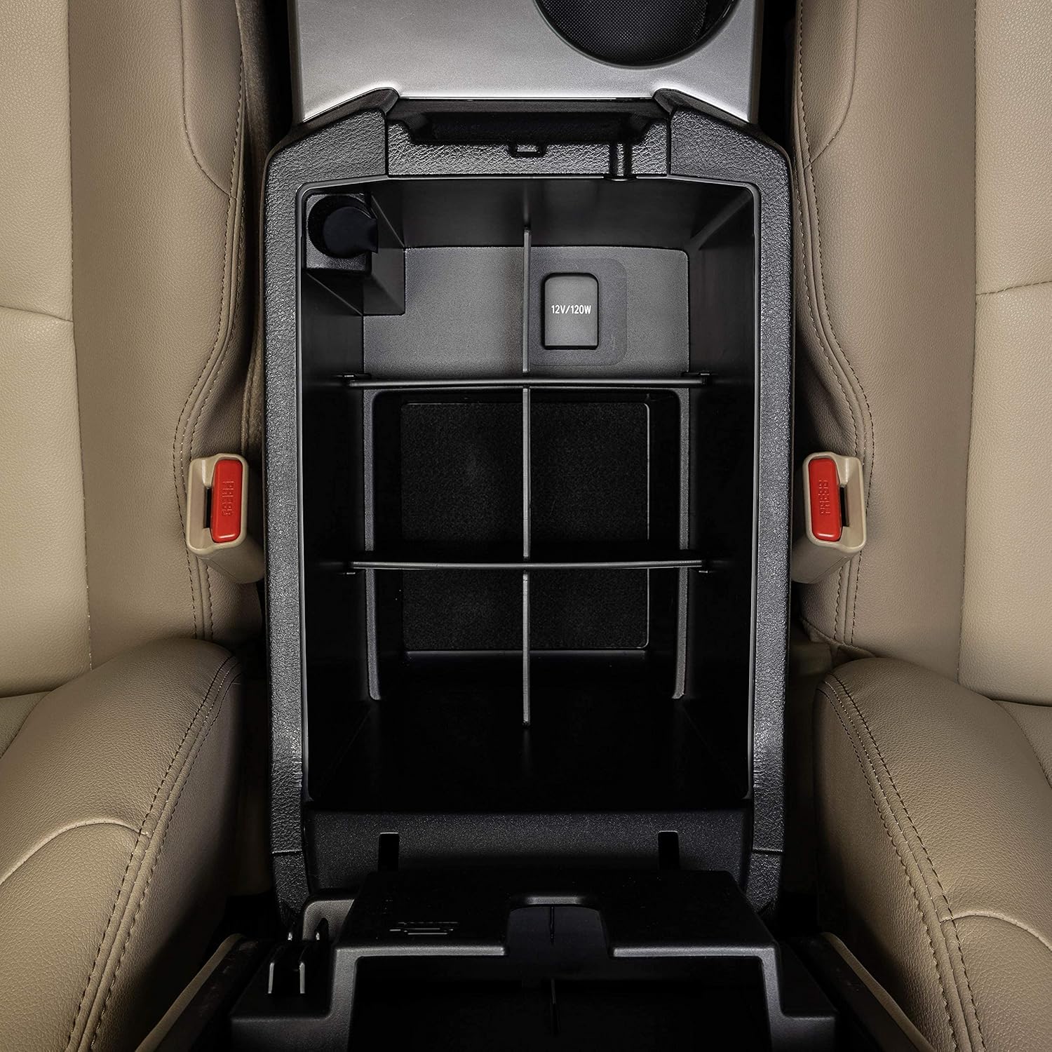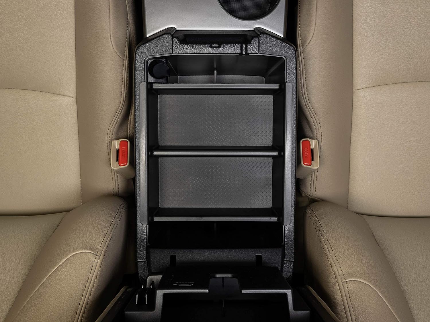 • Interlocking plastic dividers provide organization to center console space.